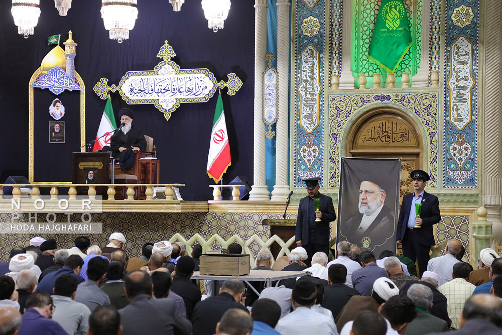 مراسم عزاداری شهادت حجت الاسلام و المسلمین سید ابراهیم رئیسی رئیس جمهور و هیات همراه عصر امروز در شبستانامام خمینی (ره) حرم حضرت معصومه(س) قم و با حضور گسترده مردم برگزار شد.