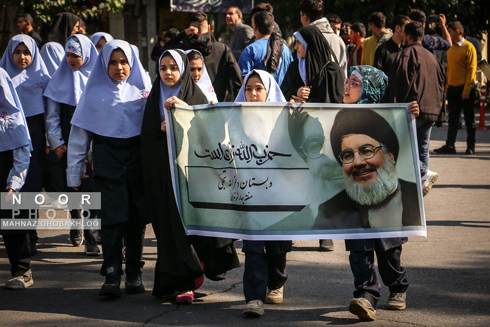 تجمع محکومیت به شهادت رساندن شهید سید حسن نصرالله و جنایات رژیم صهیونیستی و همچنین حمایت و قدرشناسی ملت ایران از عملیات و اجرای عملیات وعده صادق 2، بعد از ظهر امروز چهارشنبه با حضور اقشار مختلف مردم در میدان امام حسین (ع) تهران برگزار شد.