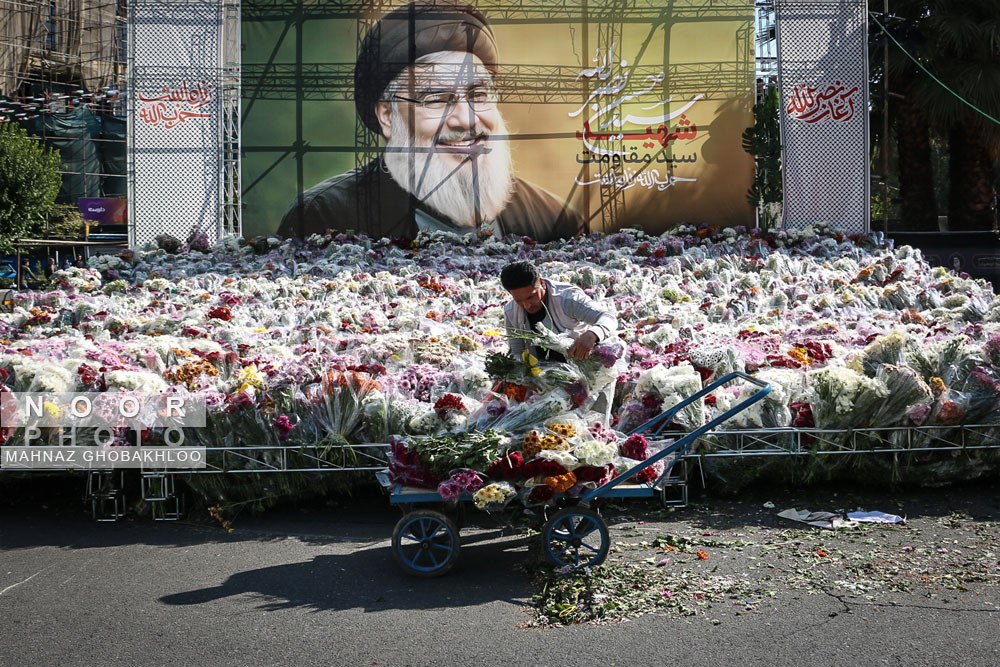 آئین ادای احترام به مقام شامخ شهیدان مقاومت و شهید سید حسن نصرالله با حضور اقشار مختلف مردم در میدان فلسطین تهران در حال برگزاریست.