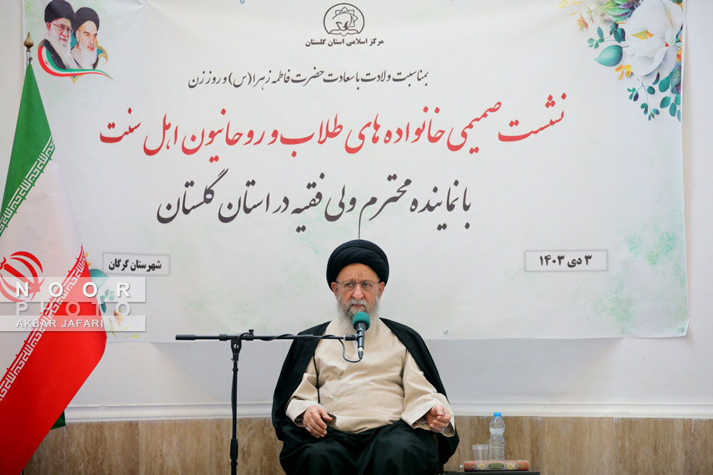 در سالروز میلاد باسعادت دخت نبی (ص) حضرت فاطمه الزهرا (س)، نشست صمیمی خانواده های طلاب و روحانیون اهل تسنن امروز دوشنبه با آیت الله سید کاظم نورمفیدی امام جمعه گرگان و نماینده ولی فقیه در استان گلستان در محل نمایندگی ولی فقیه در استان برگزار شد.