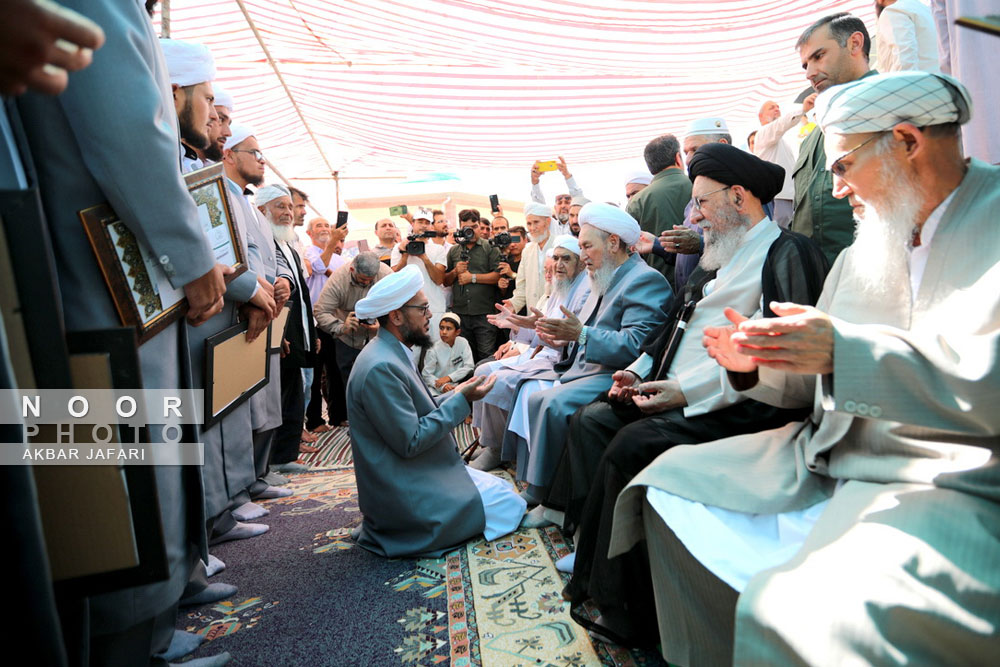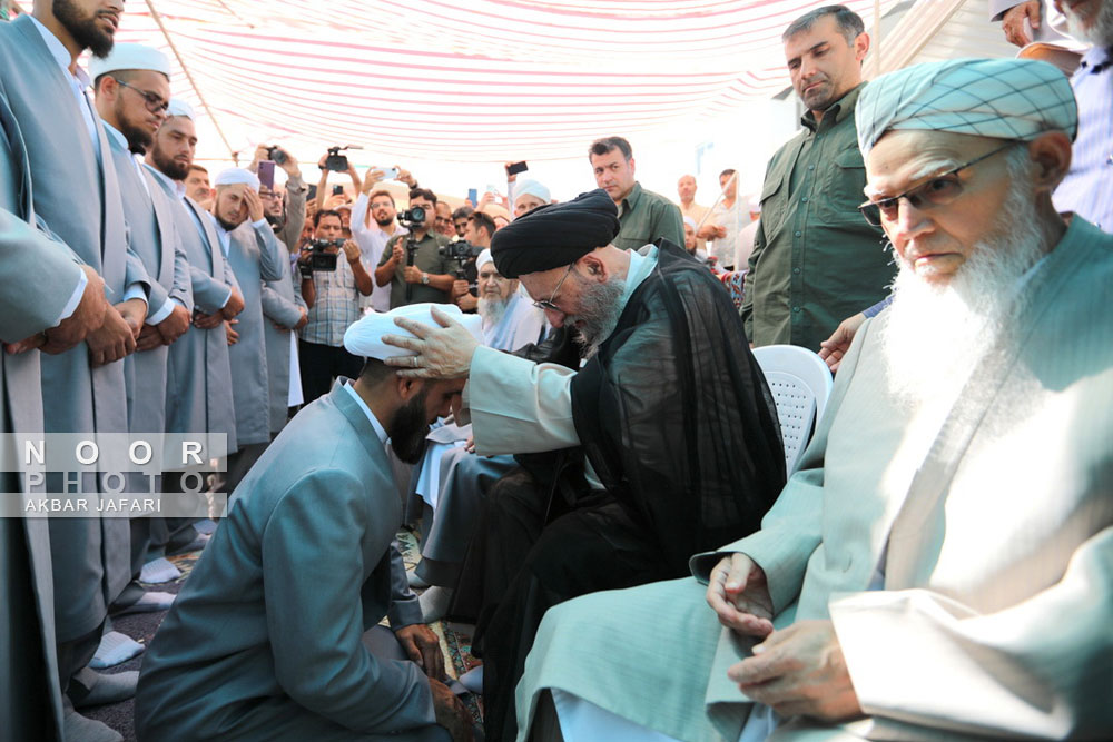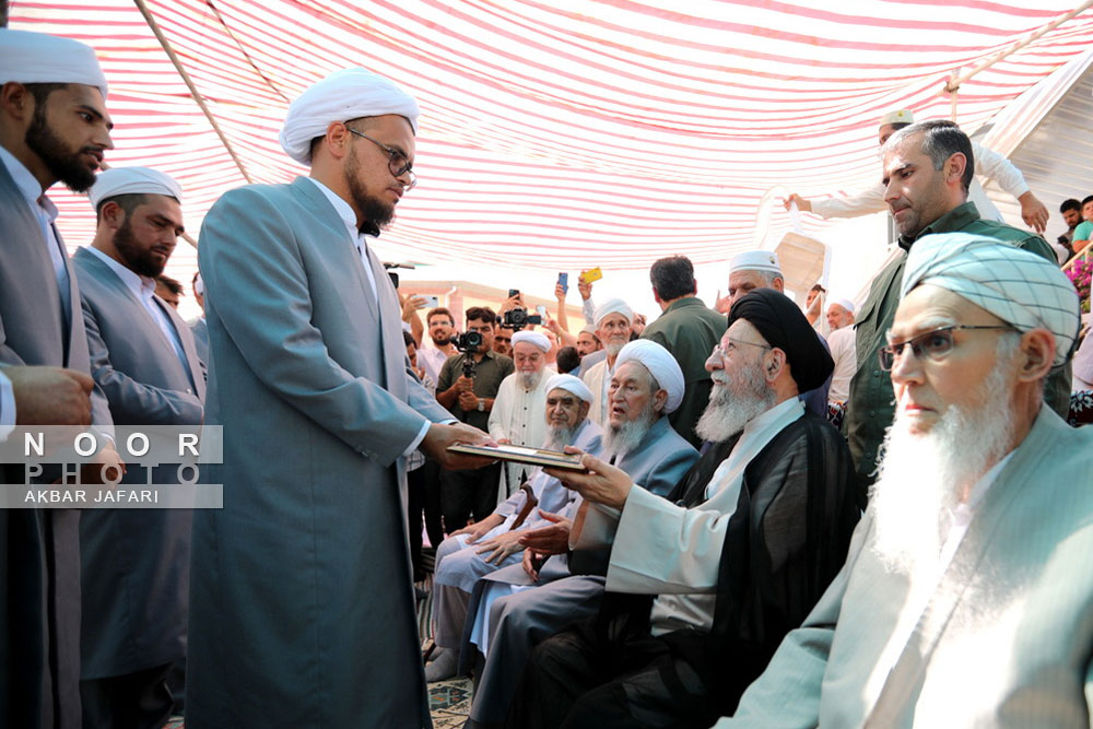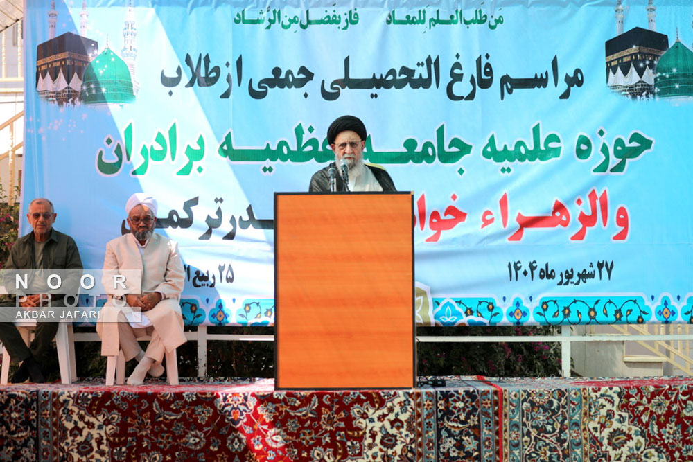 مراسم فارغ التحصیلی و عمامه گذاری طلاب اهل سنت حوزه علمیه جامعه اعظمیه شهرستان بندرترکمن با حضور آیت الله سید کاظم نورمفیدی نماینده مقام معظم رهبری در استان گلستان و امام جمعه گرگان و جمعی از علما و روحانیون و مسئولین و اهالی ترکمن صحرا پیش از ظهر امروز پنجشنبه برگزار شد.